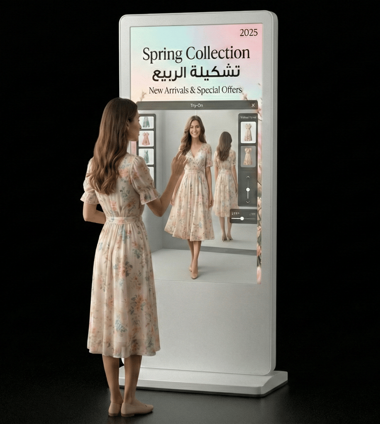 Empower customers to explore your entire collection and try on outfits virtually. The integrated scent diffuser can mimic the fragrance of a new garment or your brand’s signature scent, creating an unforgettable shopping experience that drives sales.